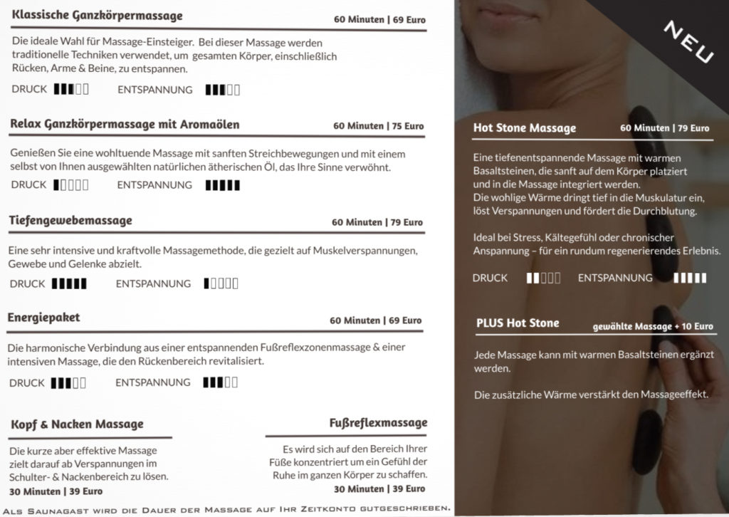 Für die stündlichen Aufgüsse verwenden wir nur naturreine Aufgussmittel, ätherischen Öle und bieten Euch somit immer allerhöchste Qualität. Die Düfte wechseln im Laufe der Jahreszeiten und versprechen eine stimmungsvolle Atmosphäre.